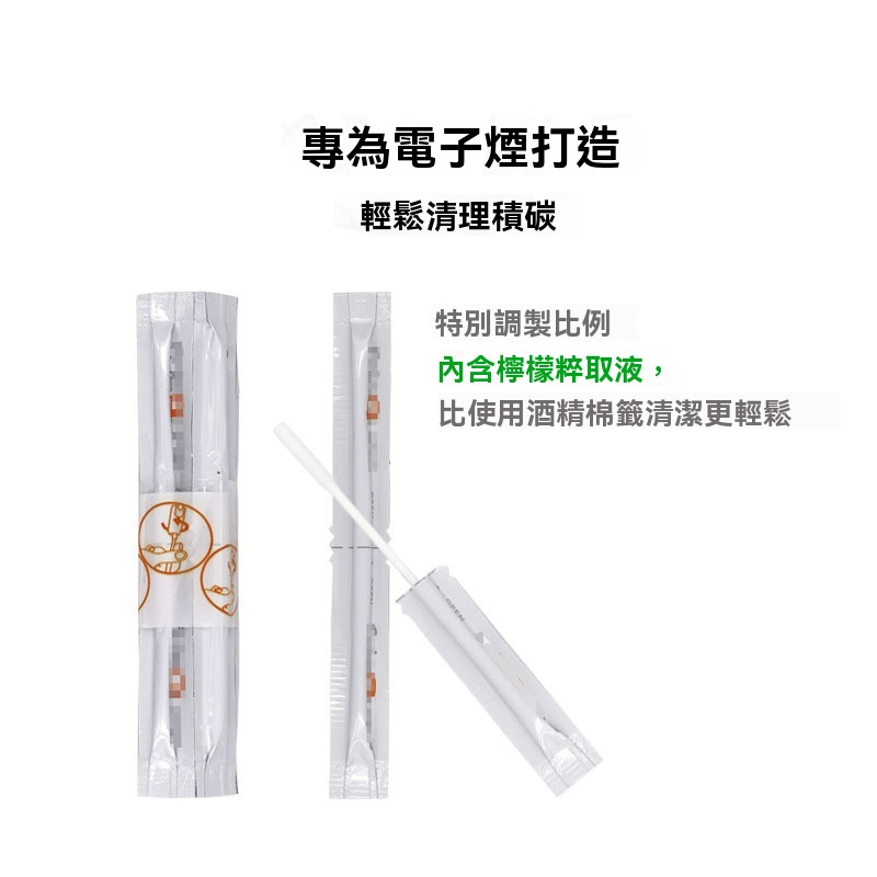 高效清潔液: 套裝中包含浸漬了專業清潔液的獨立包裝棉簽。這些清潔液通常採用檸檬水或溫和酒精基底配方,能有效溶解並去除附著在陶瓷發熱片和加熱倉內壁的頑固焦油與殘渣。